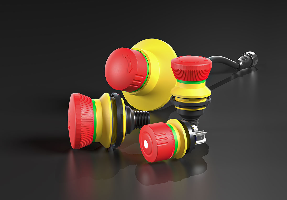 While the emergency switch-off convinces with a complete disruption of power supply, the emergency-stop ensures a safe stopping of the machine without loss of power supply. Both systems play a decisive role for machine safety and should be carefully adjusted to each application.