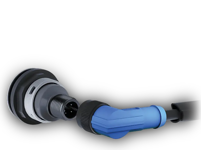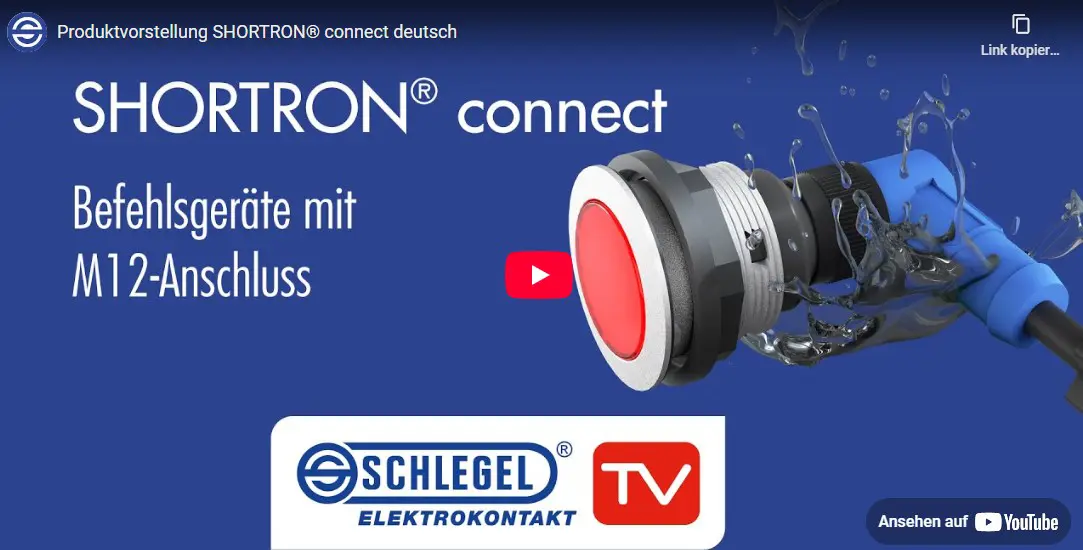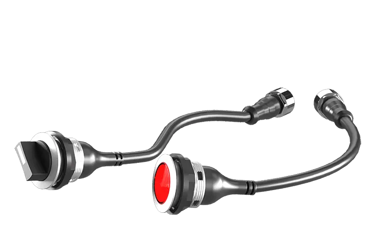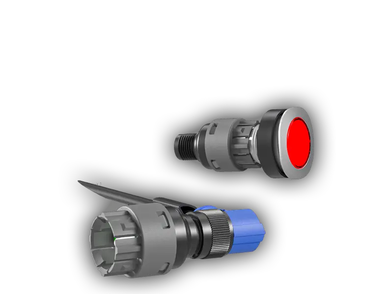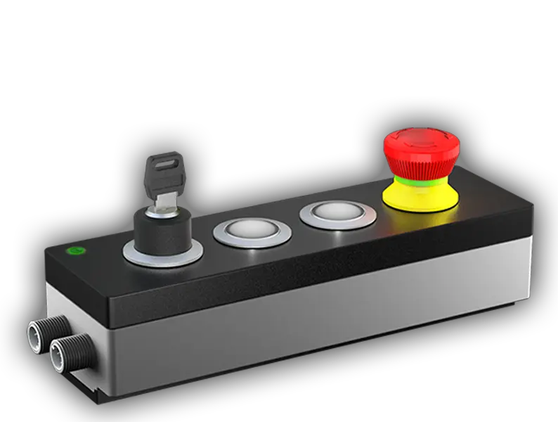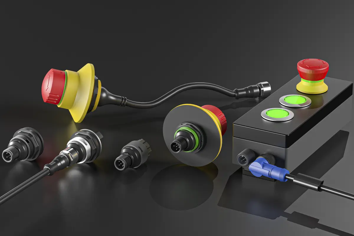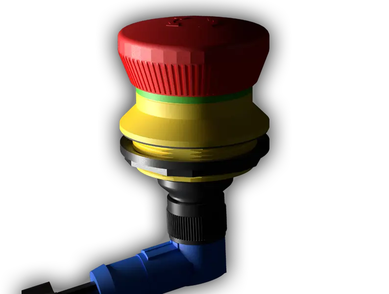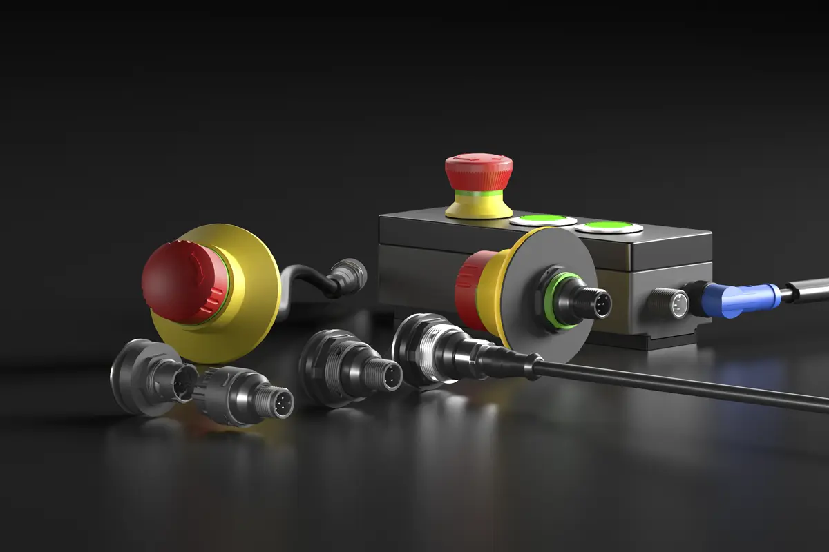 The M12 connector is an industrially standardised circular connector that stands for compact and robust connections. For operating units like pushbuttons or emergency-stops the M12 connector enables a fast, error-free and pluggable wiring, which is particularly suitable for decentralised use.