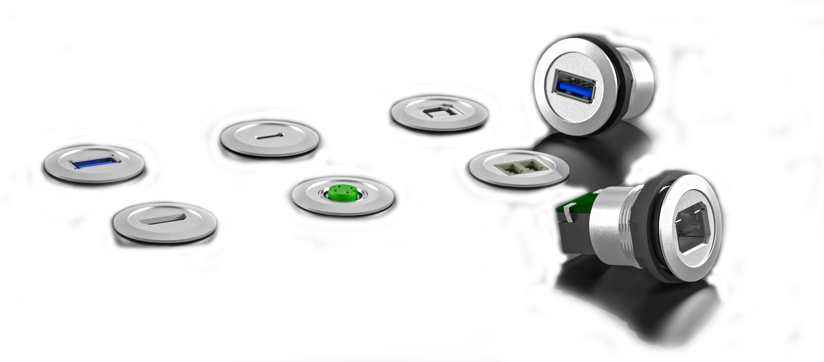 Panel mount jacks are simple interfaces that connect physically separated systems to enable the exchange of data. A typical application in the machine building industry is the following: An USB input on a machine is connected to the outside via the panel mount jack and thus can be accessed.