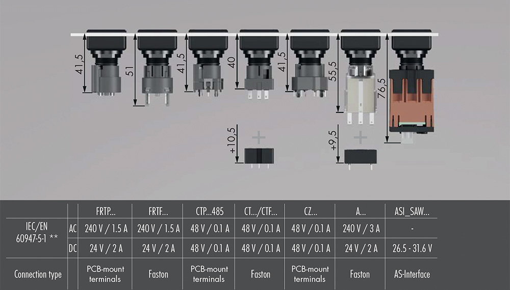 ** maximum voltage or current values, depending on the type they may also be lower, e.g. for gold-plated contacts or depending on the number of connections
