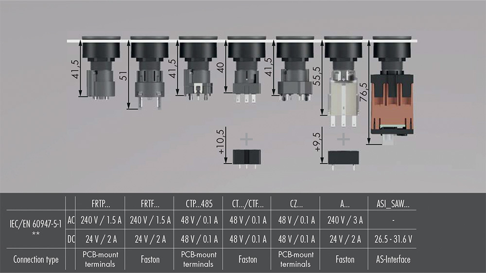 ** maximum voltage or current values, depending on the type they may also be lower, e.g. for gold-plated contacts or depending on the number of connections